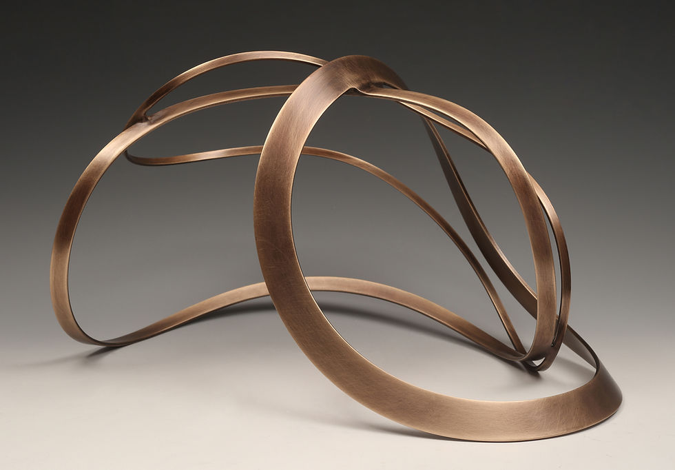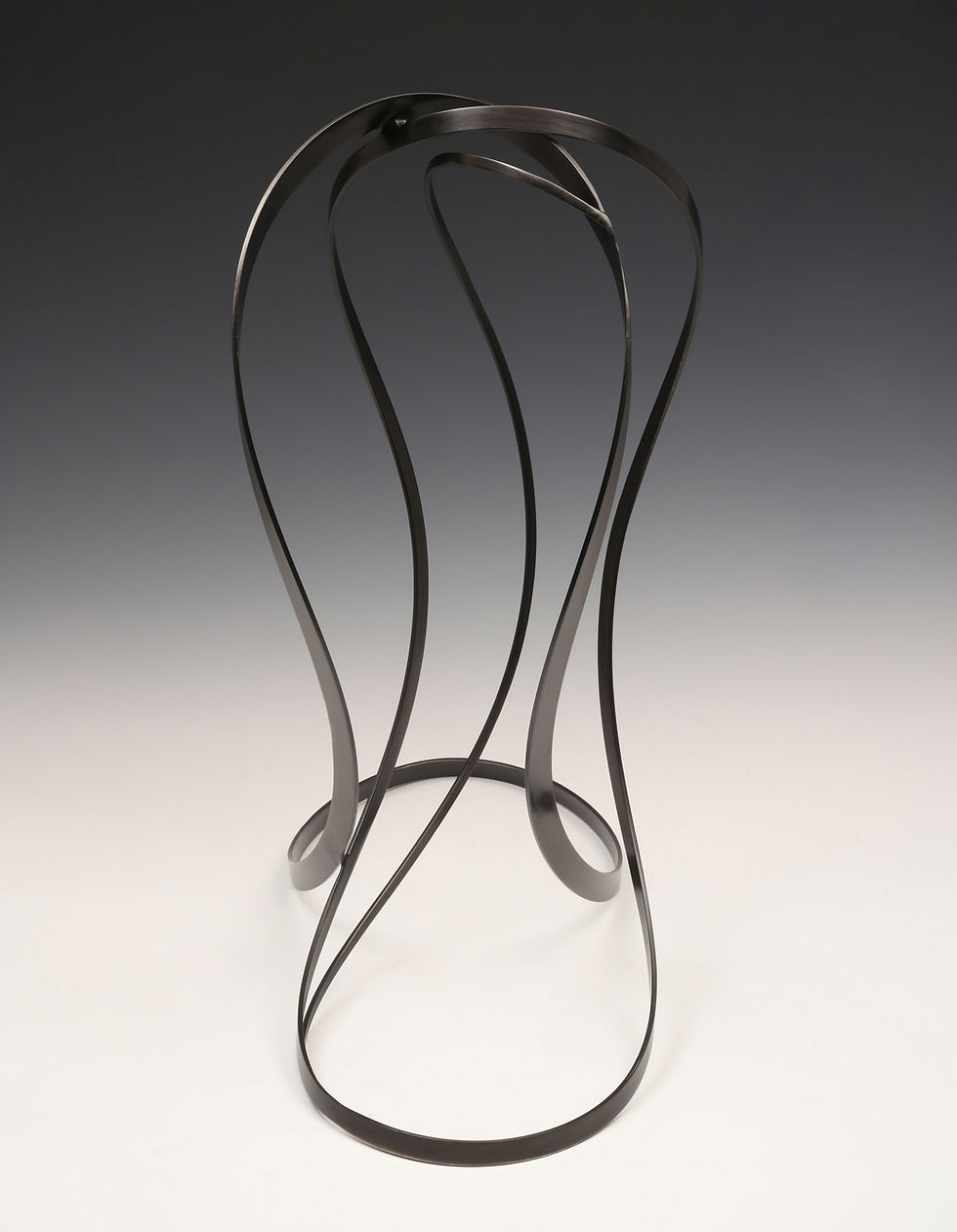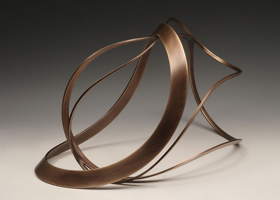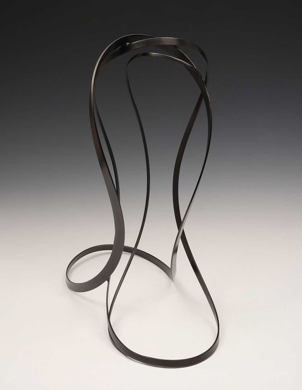 This series of hand-fabricated bronze sculptures challenges expectations by appearing weightless, creating a dynamic visual experience from every perspective. Minimalist in design, the welds are ground down to create a seamless sense of flow, while the patina subtly shifts the metal’s color, adding contrast and visual rhythm. In this series I challenged myself to explore how sculpture transforms when it has no base and instead wraps around space and itself.